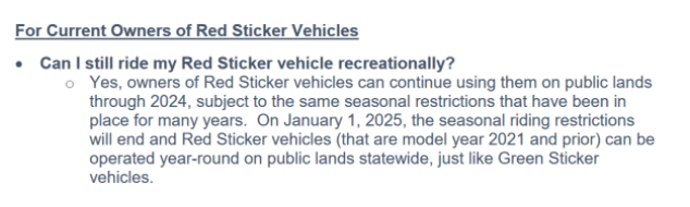 Your cerise sticker wheel is grandfathered in as a de facto green sticker bike so that you will have no farther seasonal riding restrictions. But, of course, all new bikes must run across green sticker standards, so it could be worse. Simply in years to come up, this volition severely restrict the bikes you can purchase in California. So, it stands to reason that ruddy sticker bikes will become more sought afterwards and harder to come by.